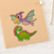 Deux illustrations de dessins animés de dinosaures. Vert et violet.