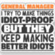 Drôle Directeur Général Dit "Directeur Général J'Essaie De Faire Des Choses Idiot Preuve Mais Ils Continuent À Faire De Meilleurs Idiots". Prenez ce dessin Funny General Manager comme un cadeau amusant pour une maman, un père ou un ami génial.