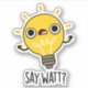 Dites Watt Funny Light Bulb Pun comporte une jolie ampoule. Un cadeau de jeu de mots parfait pour la famille et les amis qui aiment les mignons puns d'ampoules électriques.