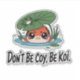 Perched on top of the lily pad is a tiny, curious frog, adding an extra touch of charm and playfulness. Beneath the artwork, bold Japanese‑brush‑style typography reads “Don’t Be Coy, Be Koi”.