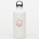 Chat Kawaii assis dans un donut glacé rose avec une petite feuille, souriant avec des joues roses, entouré d'étoiles et de cœurs.