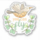 Cet autocollant présente le message "vous pouvez voler" au centre d'un joli oiseau chanteur brun tacheté volant au-dessus et deux branches de feuilles en forme de cœur vert sur les côtés. Un message de motivation avec une illustration douce !