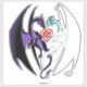 Un dragon violet et blanc en l'air formant un coeur avec ses ailes avec un coeur rose celtique et rouge entre eux dans un arrière - plan de bleu.