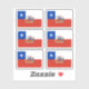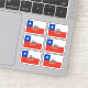 Six autocollants vinyliques coupés sur mesure avec le drapeau de la République du Chili ; un drapeau rouge, blanc et bleu avec une étoile blanche dans un carré bleu et avec l'emblème national du Chili avec un condor andin et un huemul au centre