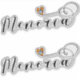 Des autocollants découpés (2 sur feuille) avec un design stylisé scripté présente le drapeau de Minorque dans un coeur.