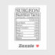 Sticker Drôle Chirurgien Nutrition Facts, Cadeau Chirurgie