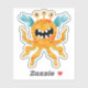 Sticker Drôle Monstre Orange Trois Oeil avec Tentacles
