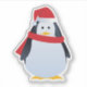 Pingouin de Noël mignon dans un chapeau de Père Noël rouge et foulard.