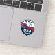 Un badge audacieux de style athlétique, avec un aigle à tête blanche à aile allongée, trois étoiles et une couronne de laurier au-dessus de la varsity "USA". Des formes vectorielles propres et une palette marine forte lui donnent un air pro-équipe, parfait pour les T-shirts, les sweat - shirts à capuche, les casquettes, les autocollants, les tasses et les affiches pour le jour du jeu, les défilés et les événements patriotiques.