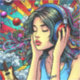 Sticker Écouter de la musique sur les écouteurs Psychédéli