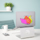 La colle n'est pas très collante. Le point positif est que le collant s'enlève facilement. Le point négatif est que les côtés "frisent" un peu, je l'ai collé sur mon ordinateur et quand je le met et l'enlève de mon sac, ça abime un peu les rebords. Mais ça tient quand même depuis quelques semaines sans problème, c'est juste les côtés qui sont un peu abimés. Je suis très satisfaite de la qualité de l'impression. Les couleurs sont fantastiques et tiennent bien le coup.