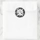 Éffrayant mignon enfant noir et blanc autour des autocollants Halloween avec le nom de l'enfant. Ils sont dotés d'un motif frontalier, ainsi que d'un fantôme, d'un fantôme de chat et de deux chauves-souris. Idéal pour sceller les sacs à traiter ou à distribuer comme faveurs de fête. © ArianeC Illustrations-Tous droits réservés
