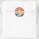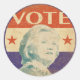 Un autocollant rond avec Hillary Clinton imprimé en style vintage en détresse pour l'élection présidentielle de 2016. Un autocollant de style bouton rond avec Hillary Clinton au centre vous disant de voter.