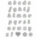 Élégant sauge vert couleur typographie de police de script de caractères de lettres inférieures coques pack d'autocollant alphabet pour monogramming, personnalisation, customisée, écriture de notes, journaux, carnets, et plus. Cet ensemble comprend également un point d'exclamation, coeur, fleur et étoile.