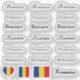 Stickers Countour : Elégant script Nom ensemble - Roumanie & drapeau roumain - nom personnalisé en 6 x 3 polices personnelles d'écriture. Cool noir autocollants manuscrits vous permet de marquer vos objets, mettre le nom avec touche personnelle / nom peut être costumé