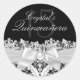 Sticker Silver & Black Quinceañera. Design élégant en damas avec arc en soie perlé. Customisez avec vos propres détails. Remarque : Toutes les images plates. Ils n'ont pas de vrais arcs, dentelles ou bijoux !