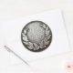 Autocollant rond avec l'image d'un médaillon de couronne de laurier argenté. Voir confettis assortis, préférer étiquette et papier d'emballage. Voir l'ensemble de la collection Toga Sticker dans les INVITATIONS | Section Stickers & Étiquettes.