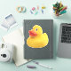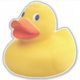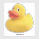 Autocollant vinyle taillé sur mesure avec l'image d'un canard en caoutchouc jaune aux grands yeux noirs et à la facture orange. Voir l'ensemble de la collection Kids’ Corner Sticker dans les INVITATIONS | Section Stickers & Étiquettes.
