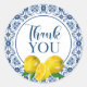 Un joli autocollant de remerciement décoré de citrons et de tuiles bleues italiennes. Parfait pour remercier vos invités mariages ou de douche nuptiale Conçu pour vous par Blackberry Boulevard.