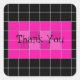 Un design amusant avec des carreaux noirs et roses chauds. Le dicton "merci" peut être changé comme souhaité.