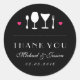 Autocollant design vintage pour la faveur de votre mariage. Style rustique merci sticker étiquette pour votre mariage classique et élégant. Customisez le libellé pour toute occasion comme la douche nuptiale, le baby shower, l'anniversaire ou la fête d'anniversaire. Décoré avec fourchette, cuillère et verres. Vintage coutellerie occidentale. Vous pouvez customiser la couleur arrière - plan de cet autocollant en cliquant sur le bouton "customiser" pour plus d'options.
