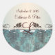 Sticker feuille damassé bleu-vert (noir-moyen faible cyan, turquoise) brun et décoratif. Vous pouvez ajuster le texte selon vos besoins : changer la police, la couleur, la taille et mettre vos initiales.