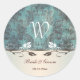 Carton vert-bleu damassé (cyan faible foncé moyen, turquoise) mariage brun monogramme initiales autocollant. Mettez vos noms et votre date. Vous pouvez également changer la police, la couleur, la taille.