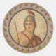 Autocollant rond avec l'image d'une mosaïque romaine antique d'un soldat. Voir les confettis assortis, étiquette préférée, étiquette et papier d'emballage. Voir l'ensemble de la collection Toga Sticker dans les INVITATIONS | Section Stickers & Étiquettes.