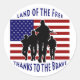 Beaux autocollants patriotiques américains ronds, disponibles en petits et grands. Une façon merveilleuse de montrer votre fierté patriotique américaine et votre soutien aux troupes américaines. L'aménagement comprend un arrière - plan américain, avec une silhouette de soldats devant. Les couleurs principales sont le rouge, le blanc, le bleu et le noir. L'autocollant dit, Amérique... Terre des libres.. Merci aux courageux. Visitez notre magasin pour d'autres cadeaux patriotiques, chemises et cartes de voeux, dans différents styles, designs et couleurs.