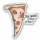 Cet autocollant simple et audacieux est parfait pour tous ceux qui aiment la pizza (et une petite attitude)! Que vous décoriez votre ordinateur portable, votre bouteille d'eau ou votre journal, cet autocollant montrera le monde que vous êtes sérieux à propos de votre pizza... et de votre attitude !
