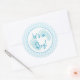 Autocollant rond avec une image de en vichy bleu bébé et pieds bleu bébé dans un cercle blanc avec une bordure bleue. Texte facultatif. Voir le papier d'emballage correspondant. Consultez la collection Kidz Korner Sticker dans sa catégorie CARDS & STICKERS dans la section KIDZ KORNER.