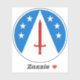 "Azur, sur un pieu inversé entre six paillettes en annulo argent, en pale pale une paillette de même."