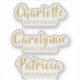 Autocollants de découpe personnalisés en vinyle clair avec un seul nom individuel script de calligraphie de couleur or; facile à modifier avec chacun de vos noms Bridesmaids. Utile pour de nombreux projets mariages tels que les faveurs do-it-yourself, les lunettes, les cartes de séjour, les invitations/enveloppes, il suffit de choisir la taille de la feuille pour répondre à vos besoins.
