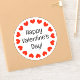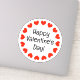 sticker en vinyle Heureuse Sainte-Valentin aux coeurs rouges. Autocollants de couleur personnalisés avec texte personnalisé. Design rond avec cercle de coeurs.