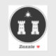 "Sable, deux tours et en chef un mullet de trois points de plus et six points de moins."