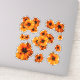 Ensemble de 9 fleurs de capucine orange vif assorties sur une feuille. Les fleurs sont des autocollants découpés de contour, et d'un design stylisé.
