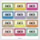 Jeu d'icônes de cassette audio vintage. Autocollants de contour. icônes vectorielles avec couleurs personnalisables. Deux champs de texte personnalisés.