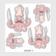 Caricature du chef calmar rose avec moustache tenant couteau et fourche à cuisine.