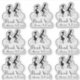 Mariage merci feuillet autocollant thématique avec 9 silhouettes graphiques séparées d'une mariée et mariée à vélo pour deux, avec texte noir lecture Merci. Personnalisez avec les noms de la mariée et du marié. Idéal pour les faveurs de mariage.