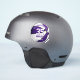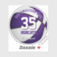 Cette étiquette de basketball couleur équipe pour filles ou garçons présente l'image réaliste d'un basketball qui a des panneaux violets et blancs - customisez le nom du joueur, le numéro de maillot, le nom de l'équipe et le nom de la mascotte - par katz_d_zynes