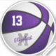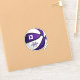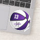 Cet autocollant de basket-ball pour filles ou garçons présente l'image d'un basketball stylisé avec des panneaux recolorés violet et blanc et facilement personnalisable nom du joueur, numéro de maillot & monogramme ou lettre de varsity - par katz_d_zynes