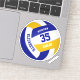 Ce sticker vinyle sur le thème du volleyball pour filles ou garçons dispose d'un simple volleyball avec des panneaux bleus, or et blanc sur lequel vous pouvez customiser le nom du joueur et le numéro de maillot dans une police de style lettre variée - par katz_d_zynes | rechercher TOUTES les couleurs de l'équipe de volley-ball bleu et or de katzdzynes cadeaux >>> https://www.zazzle.com/store/katz_d_zynes/products?cg=196070957019618272