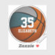 Cet autocollant de basket pour filles ou garçons présente un graphique simple de basket-ball avec des couleurs d'équipe turquoises et grises sur deux des panneaux de basket-ball et un nom de joueur facilement personnalisable et un grand numéro de maillot dans une police de style lettre variée- par katz_d_zynes