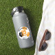 Cet autocollant de football couleur d'équipe pour garçons ou filles dispose d'un ballon de football de style traditionnel avec des panneaux noirs, orange et blancs - customisez le nom du joueur, le numéro de maillot, le nom de l'équipe et le nom de la mascotte - par katz_d_zynes