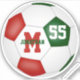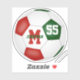 Cette équipe colore l'autocollant de football pour garçons ou filles présente l'image réaliste d'une balle de football avec des panneaux rouges, verts et blancs - customisez le nom du joueur, le monogramme et le numéro de maillot - par katz_d_zynes