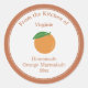Un Sticker Étiquette aux tons oranges rustiques sur un arrière - plan rond blanc et un entourage kraft à vendre ou à partager pour vos préparations à base d'orange maison comme la marmelade, la confiture, le jus, la conserve, etc.