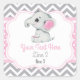 Étiquette Sticker avec Pink Grey chveron poka dot anniversaire d'éléphant, baby shower en Or et Bleu profond, avec chevron et parties scintillant arrière - plan or.