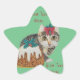 Sticker Étoile chatte chatte grise tabby chat avec arc rouge noël