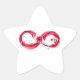 Infinity symbole of continuous stream of red pouring into glass glass glass on white background.