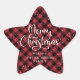 Buffalo rouge personnalisé plaqué Joyeux autocollants étoile de Noël. Personnalisez facilement ces autocollants rouges et noirs à damiers Noël avec votre nom de famille.